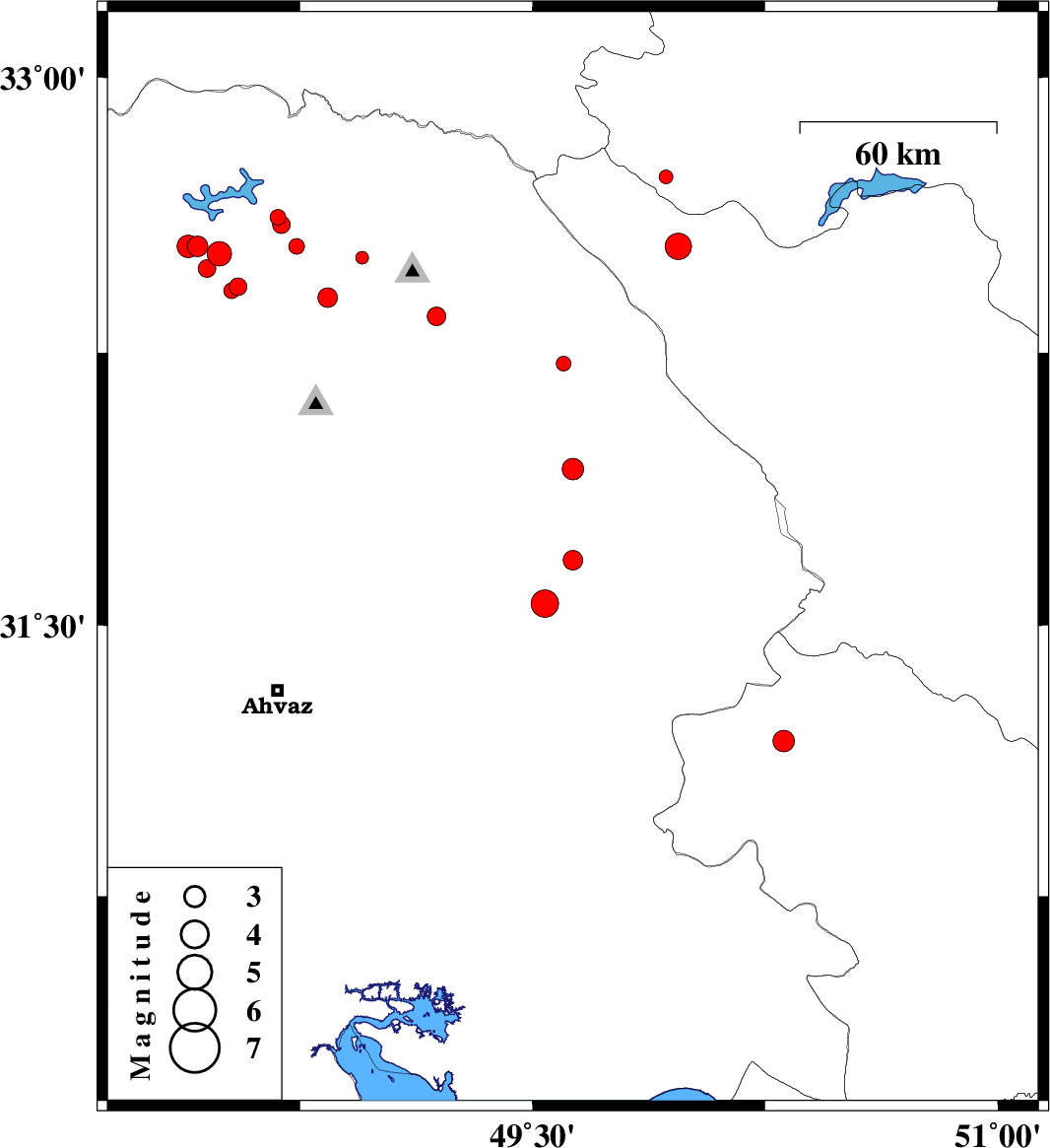 2014/03/12 | 03:41:53.9 | 07:11:53.9 | 32.52 | 48.49 | 14 | ML:3.5 | Khoozestan Province, 14 km East of Andimeshk | ||