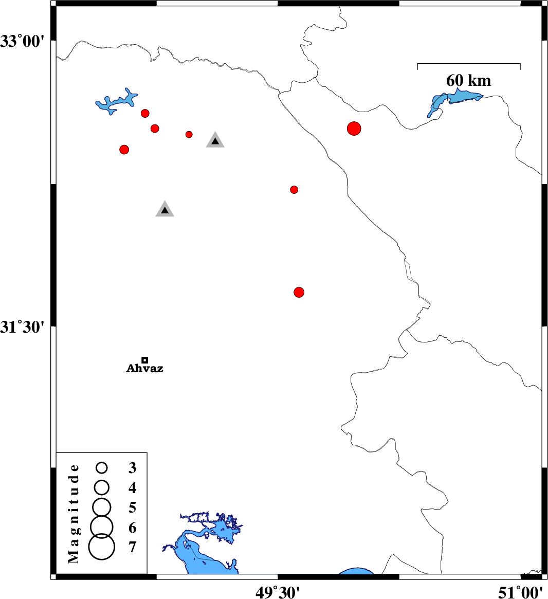 | 2014/03/27 | 10:10:59.5 | 14:40:59.5 | 32.43 | 48.55 | 14 | ML:2.5 | Khoozestan Province, 15 km East of Dezful |