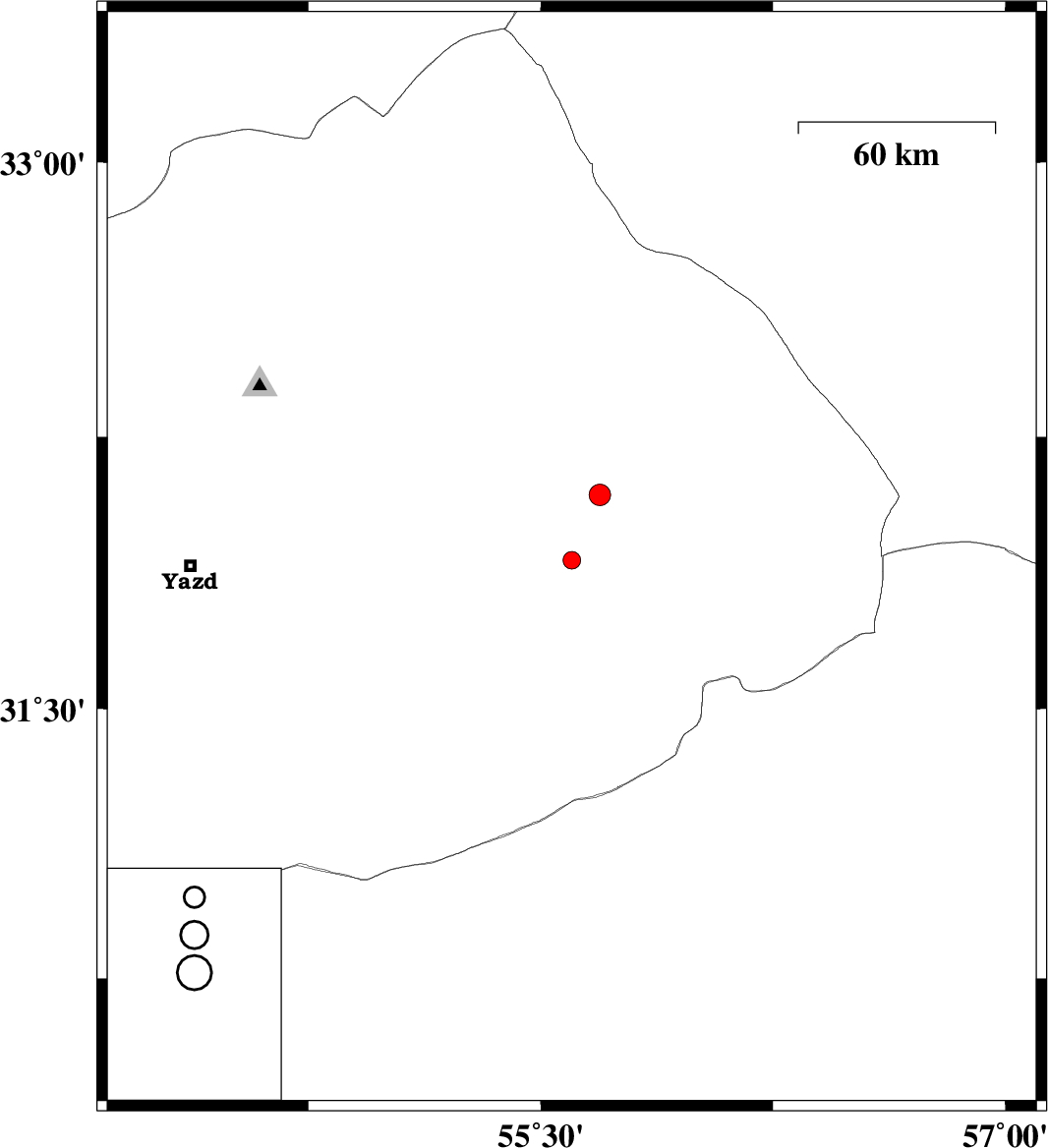 | 2014/03/31 | 21:52:52.0 | 02:22:52.0 | 32.09 | 55.69 | 14 | ML:3.1 | Yazd Province, 60 km North-East of Bafq |