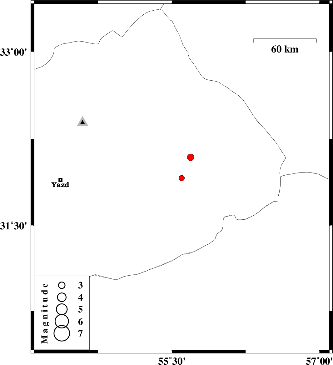 2014/03/31 | 21:52:52.0 | 02:22:52.0 | 32.09 | 55.69 | 14 | ML:3.1 | Yazd Province, 60 km North-East of Bafq |