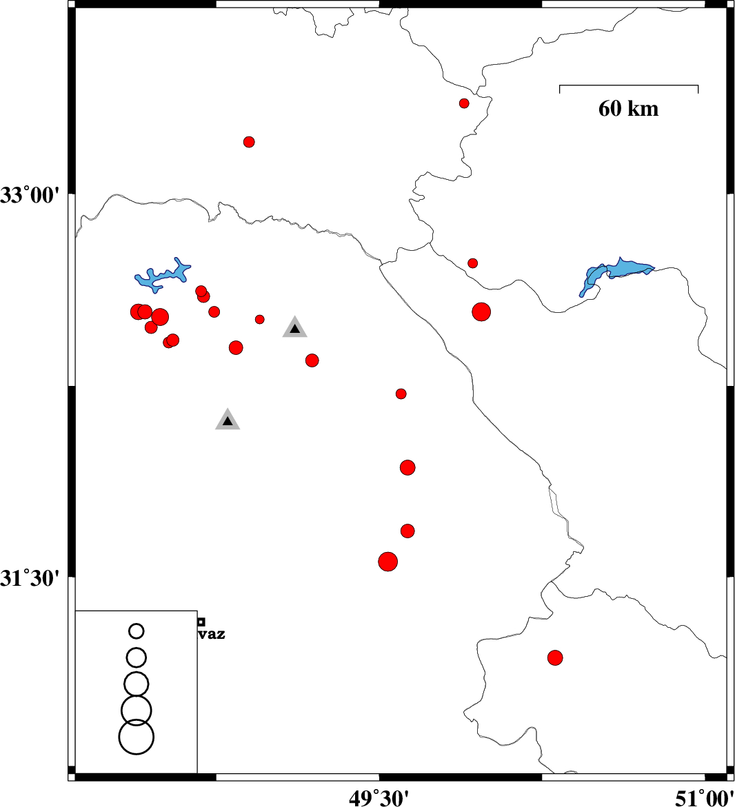 2014/03/05 | 02:31:57.3 | 06:01:57.3 | 32.73 | 49.93 | 34 | ML:2 | Esfahan Province, 29 km South-West of Fereydunshahr |