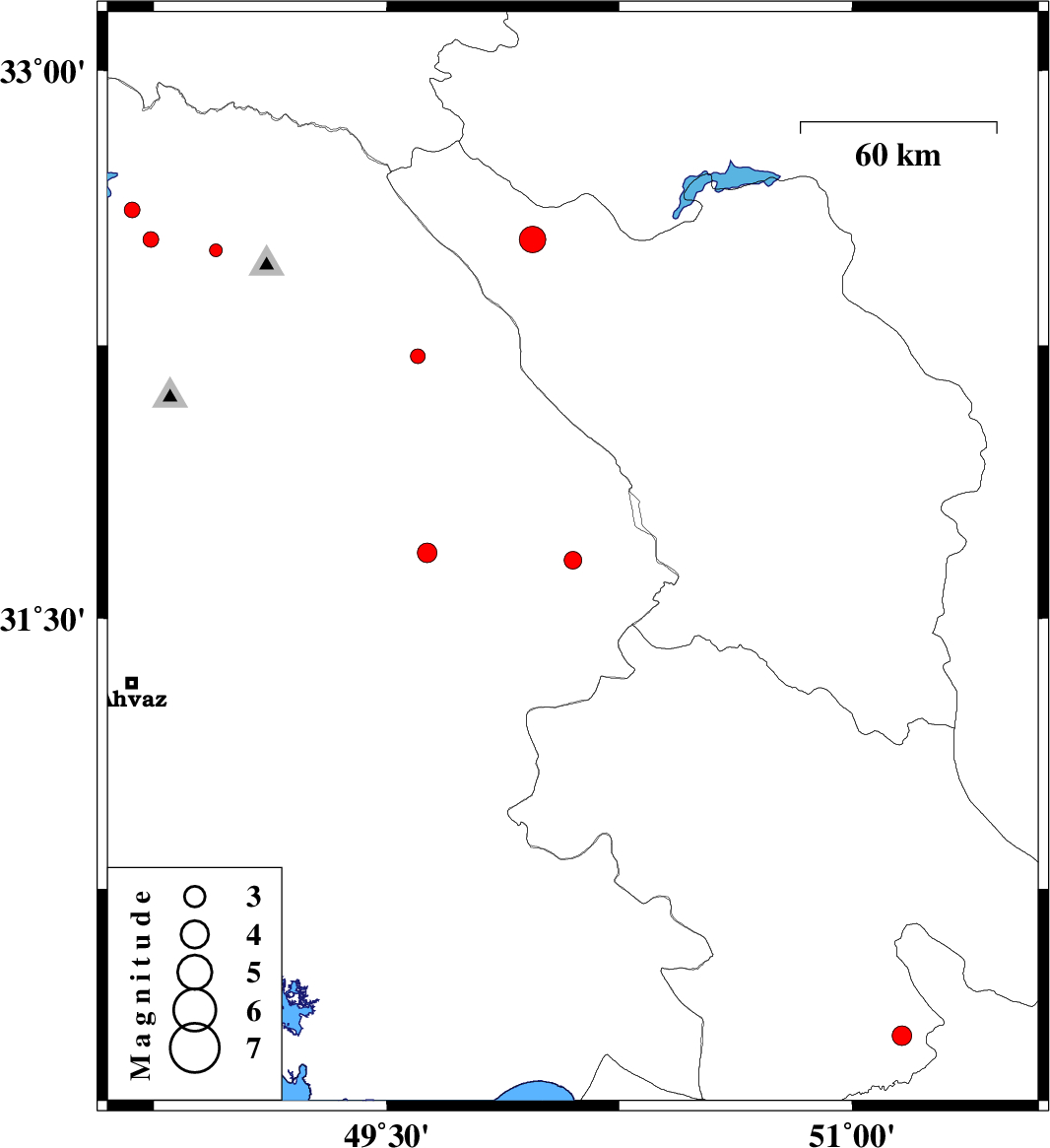2014/04/04 | 17:17:12.1 | 21:47:12.1 | 31.66 | 50.1 | 14 | ML:2.5 | Khoozestan Province, 25 km North-East of Bagh Malek | ||