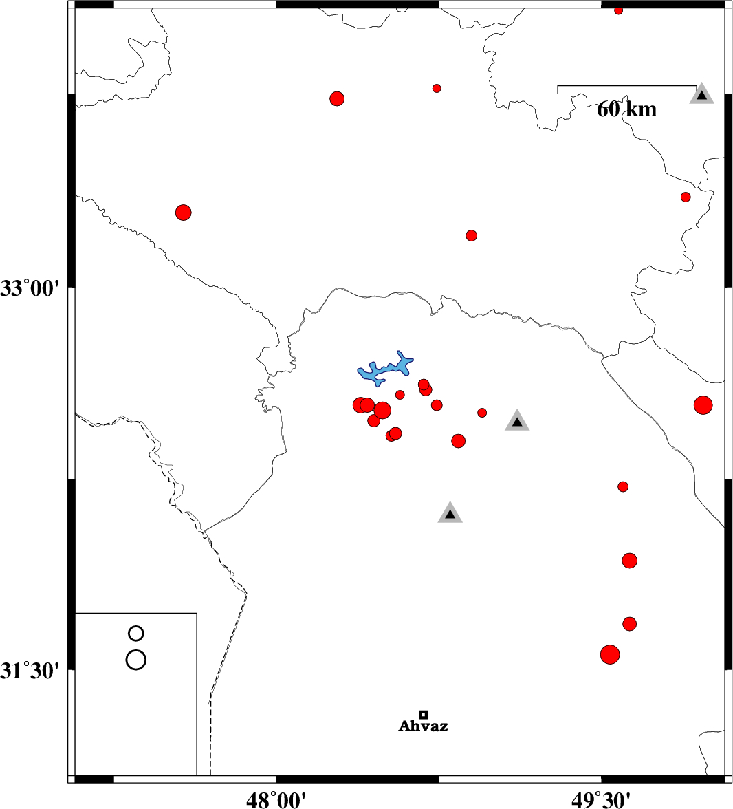 2014/03/12 | 03:41:53.9 | 07:11:53.9 | 32.52 | 48.49 | 14 | ML:3.5 | Khoozestan Province, 14 km East of Andimeshk | ||