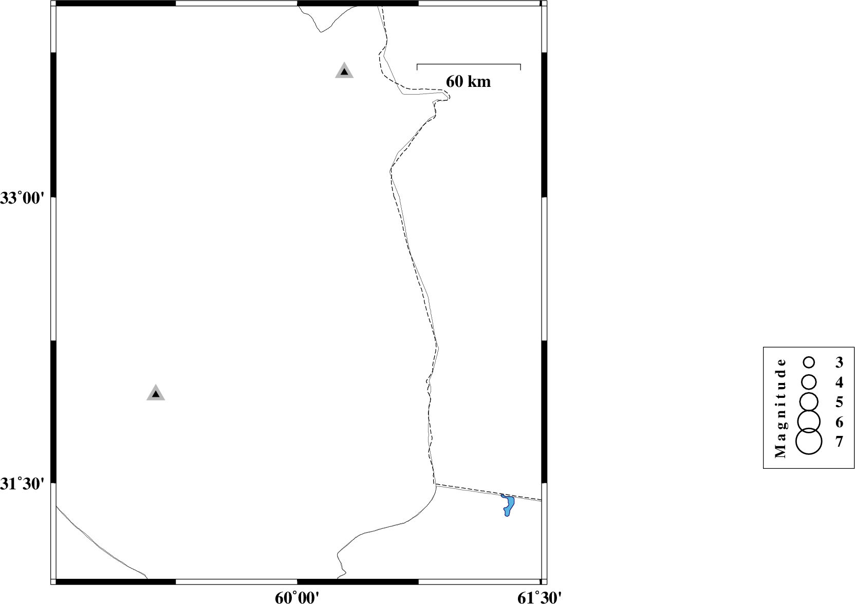 2014/04/07 | 00:12:22.6 | 04:42:22.6 | 32.49 | 60.01 | 14 | ML:4.3 | Khorasan(south) Province, 26 km South-East of Sarbisheh |