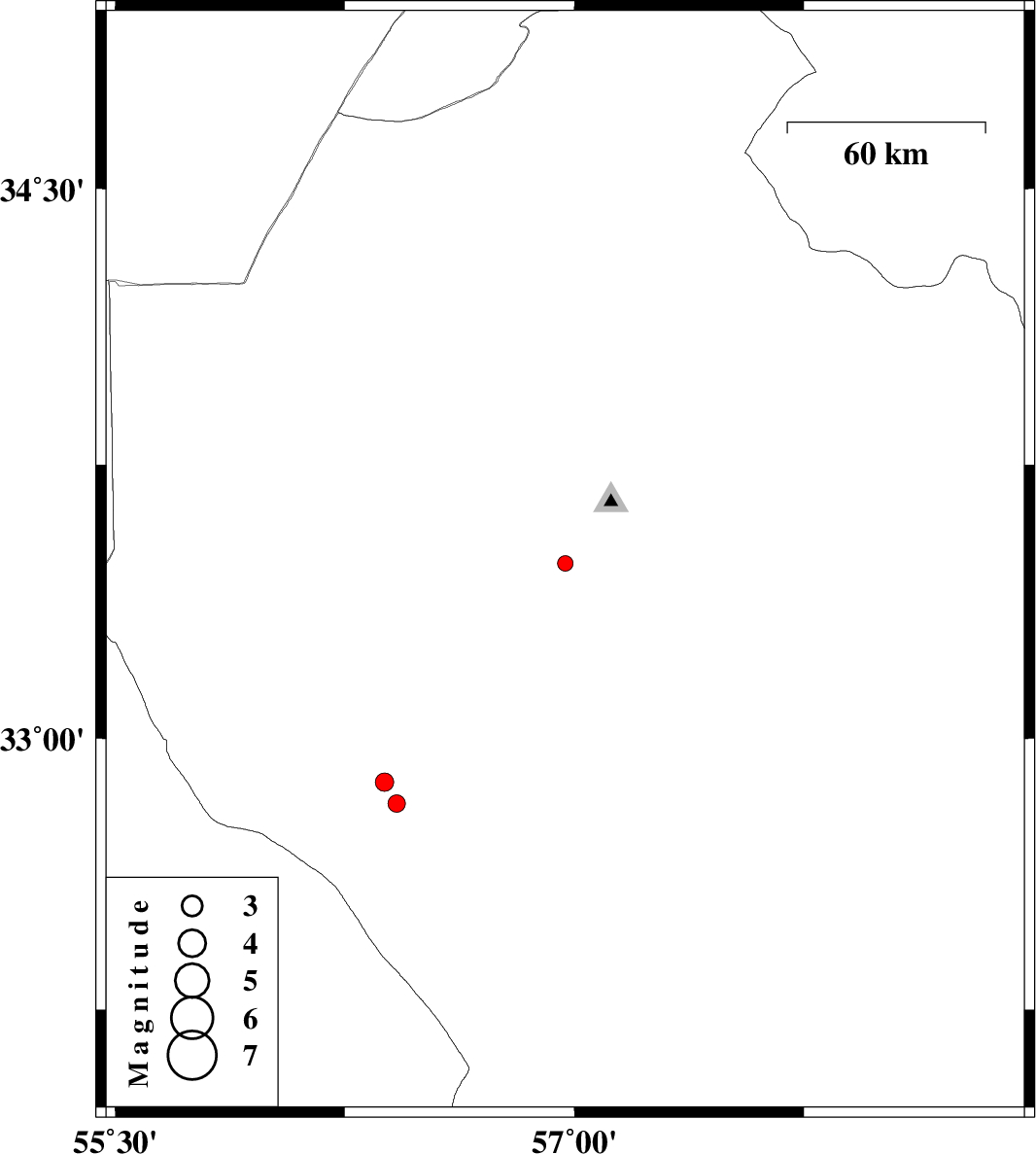 2014/03/17 | 04:42:01.4 | 08:12:01.4 | 32.88 | 56.38 | 18 | ML:2.7 | Yazd Province, 94 km South-West of Tabas |