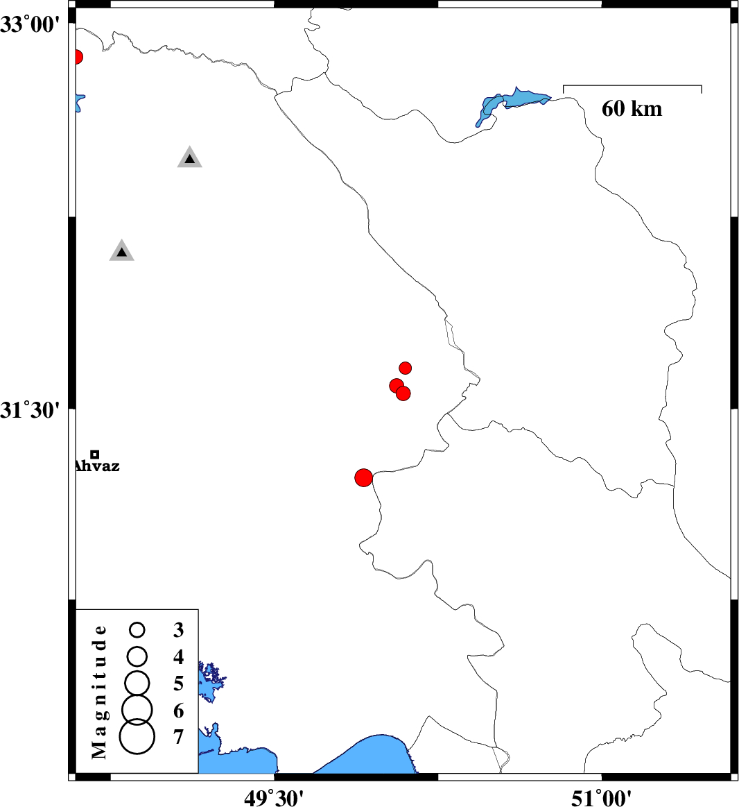 2014/04/06 | 10:15:41.6 | 14:45:41.6 | 31.23 | 49.91 | 14 | ML:3.7 | Khoozestan Province, 32 km South of Bagh Malek | ||