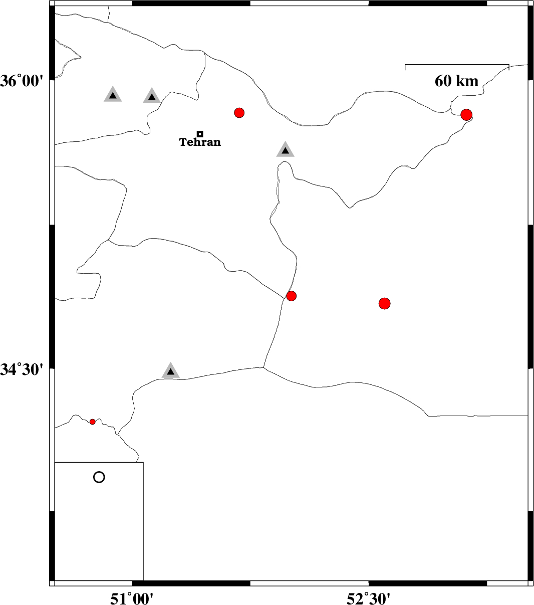 2014/04/08 | 17:38:04.0 | 22:08:04.0 | 35.82 | 53.12 | 14 | ML:3.3 | Tehran Province, 33 km South of Pol-E-Sefid |