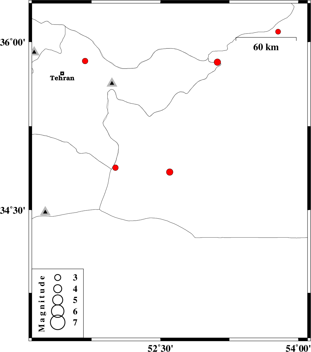 2014/04/14 | 16:26:10.9 | 20:56:10.9 | 34.84 | 52.6 | 15 | ML:3.3 | Semnan Province, 49 km South-East of Garmsar | ||