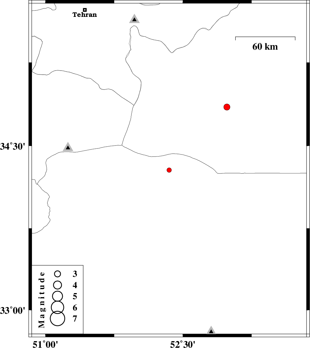 2014/04/15 | 03:42:34.1 | 08:12:34.1 | 34.85 | 52.98 | 14 | ML:3.1 | Semnan Province, 71 km South-East of Garmsar |