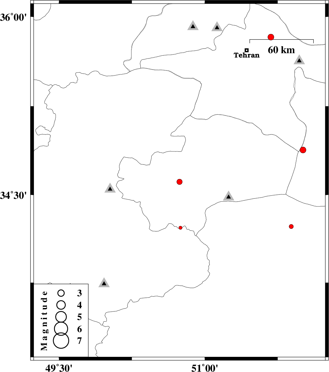 2014/04/13 | 06:08:46.5 | 10:38:46.5 | 35.83 | 51.68 | 15 | ML:2.8 | Tehran Province, 22 km East of Tajrish |