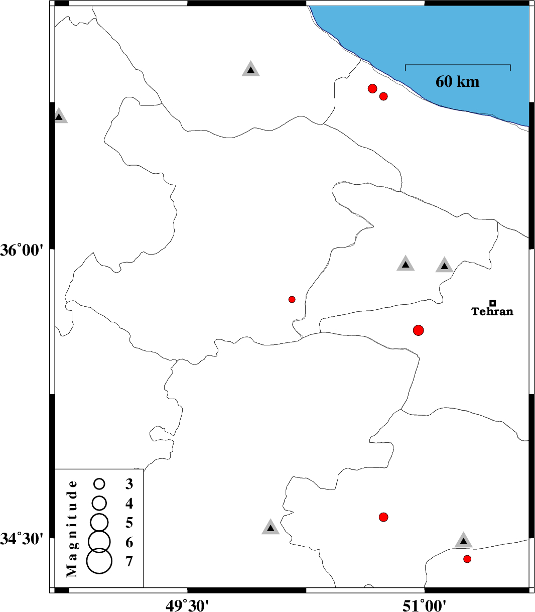 | 2014/04/14 | 11:45:16.9 | 16:15:16.9 | 36.82 | 50.67 | 44 | ML:2.6 | Mazandaran Province, 9 km Ramsar |