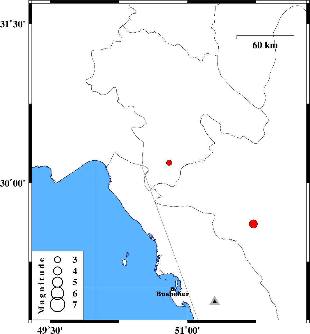 2014/05/09 | 23:23:39.9 | 03:53:39.9 | 30.19 | 50.8 | 14 | ML:2.7 | Kohkiluieh va boyerahmad Province, 18 km South of Dogonbadan | ||