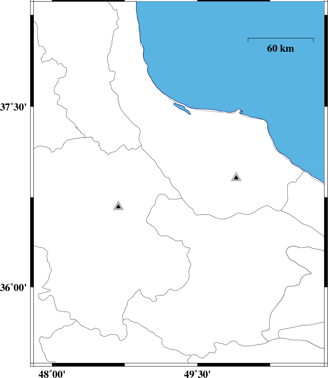 2014/05/02 | 19:55:10.1 | 00:25:10.1 | 36.78 | 50.74 | 14 | ML:2.3 | Mazandaran Province, 14 km West of Tonekabon | ||