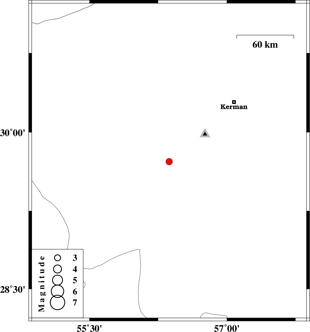 2014/05/10 | 13:36:37.4 | 18:06:37.4 | 29.72 | 56.37 | 14 | ML:3.2 | Kerman Province, 30 km South-West of Bardsir | ||
