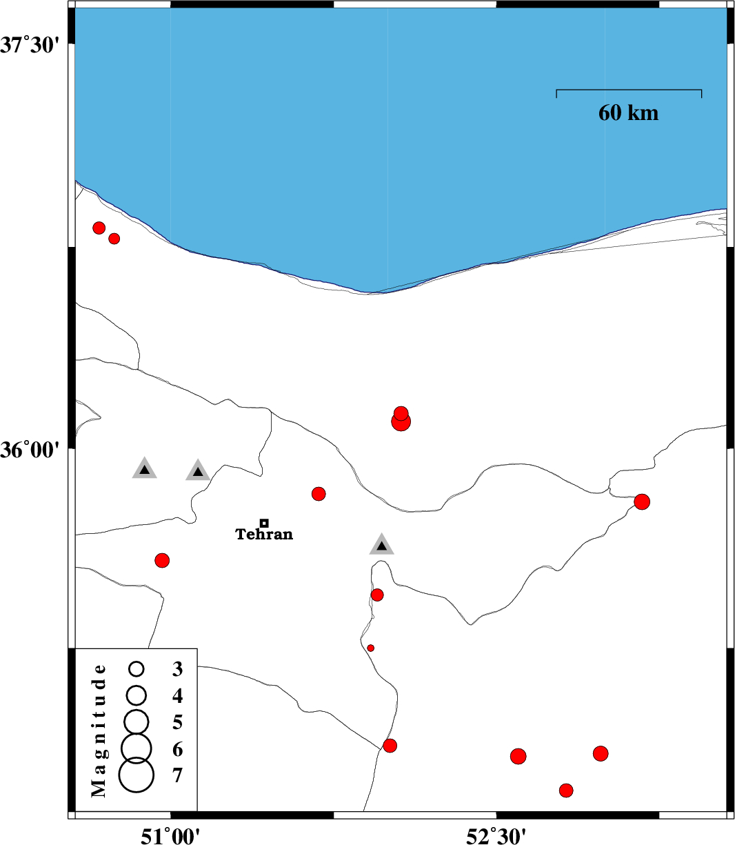2014/04/13 | 06:08:46.5 | 10:38:46.5 | 35.83 | 51.68 | 15 | ML:2.8 | Tehran Province, 22 km East of Tajrish |