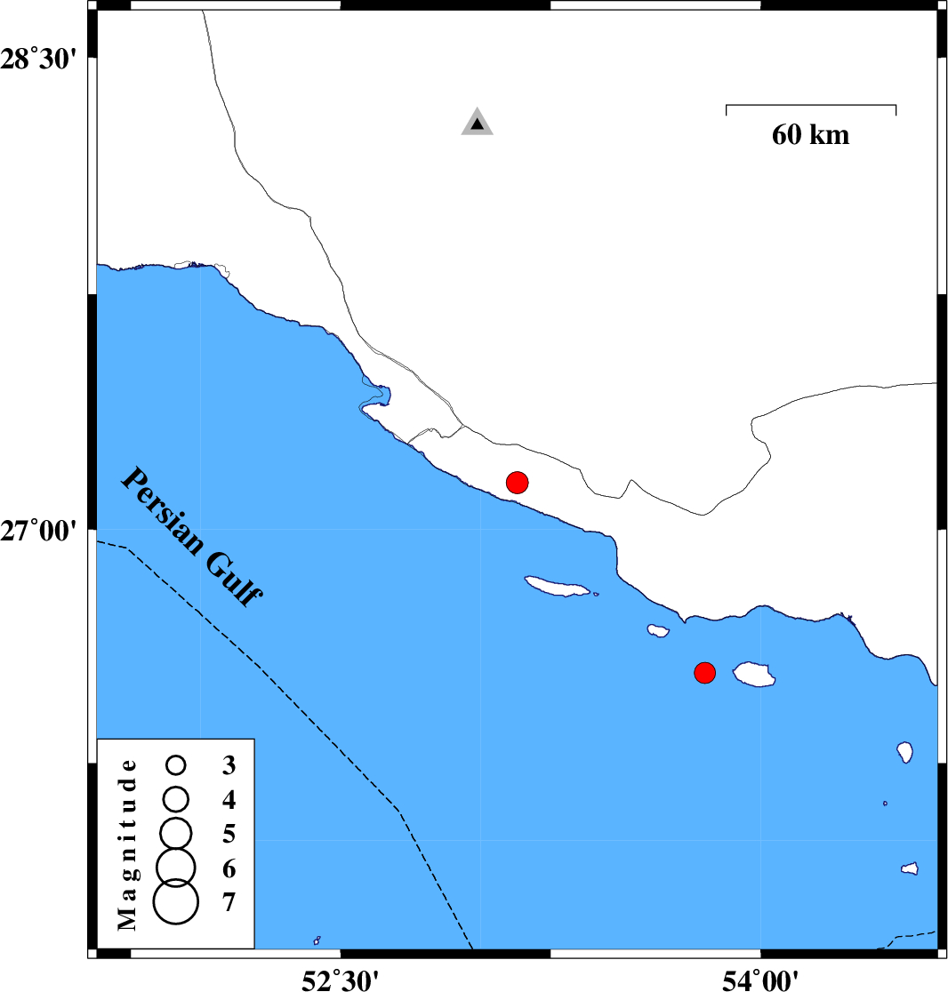 | 2014/05/07 | 15:04:21.0 | 19:34:21.0 | 26.54 | 53.8 | 14 | ML:3.4 | Persian Gulf |