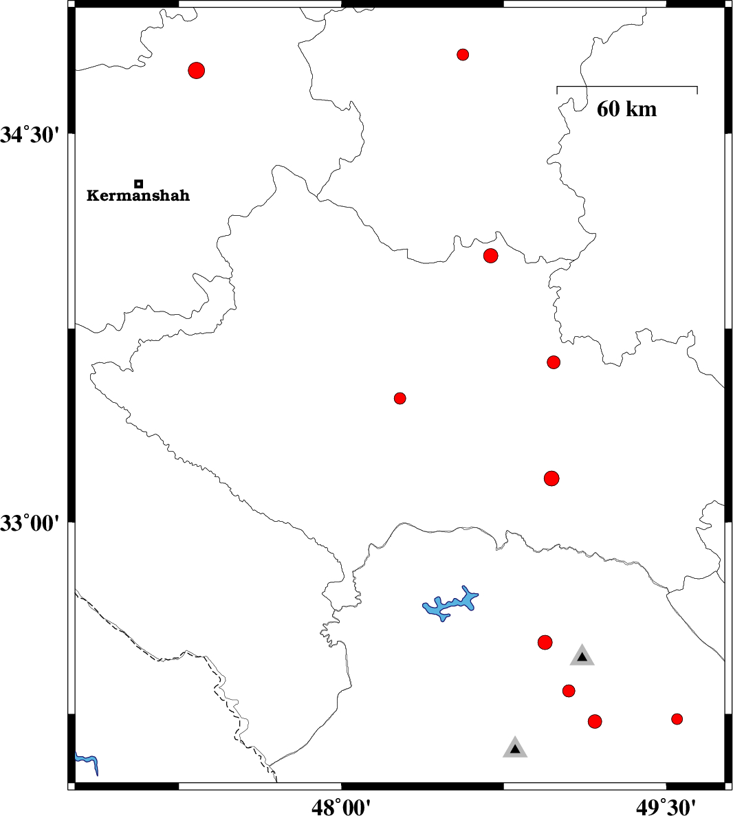2014/05/12 | 20:45:21.1 | 01:15:21.1 | 34.74 | 47.33 | 18 | ML:3.4 | Kermanshah Province, 25 km West of Sonqor | ||