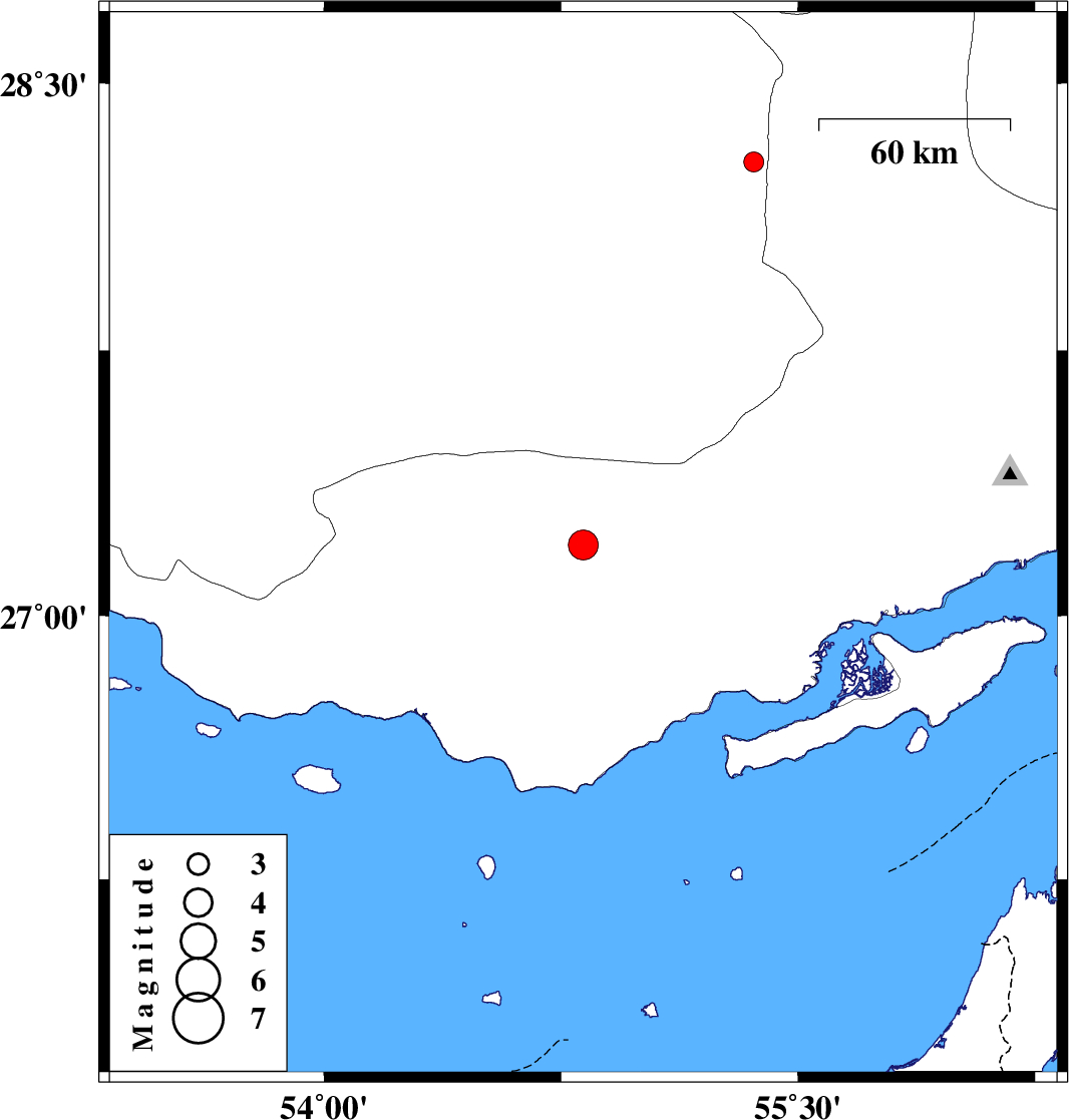 2014/05/16 | 03:29:06.1 | 07:59:06.1 | 27.2 | 54.82 | 18 | ML:4.2 | Hormozgan Province, 45 km East of Bastak | ||