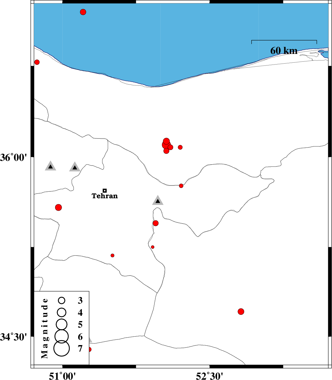 2014/05/14 | 12:55:37.5 | 17:25:37.5 | 36.05 | 52.06 | 6 | ML:2.6 | Mazandaran Province, 37 km North of Damavand | ||