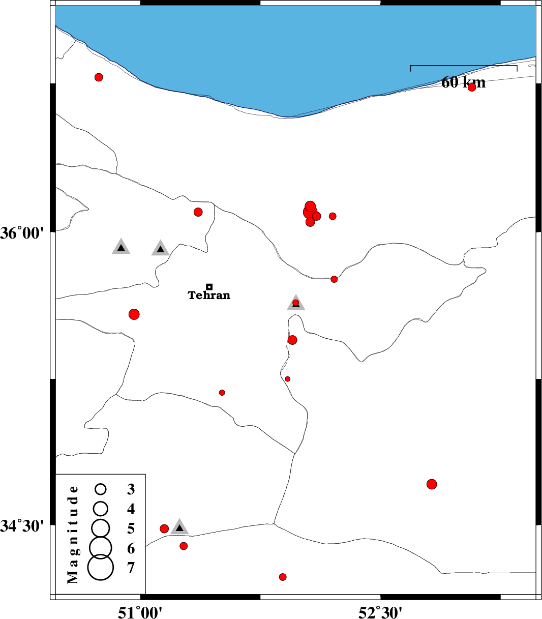 2014/05/25 | 18:44:12.6 | 23:14:12.6 | 36.1 | 51.36 | 16 | ML:2.4 | Tehran Province, 34 km North of Tajrish | ||