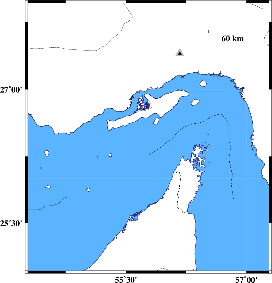 2014/05/27 | 17:38:04.6 | 22:08:04.6 | 27.56 | 56.81 | 17 | ML:3.4 | Hormozgan Province, 45 km North-West of Dehbarez | ||