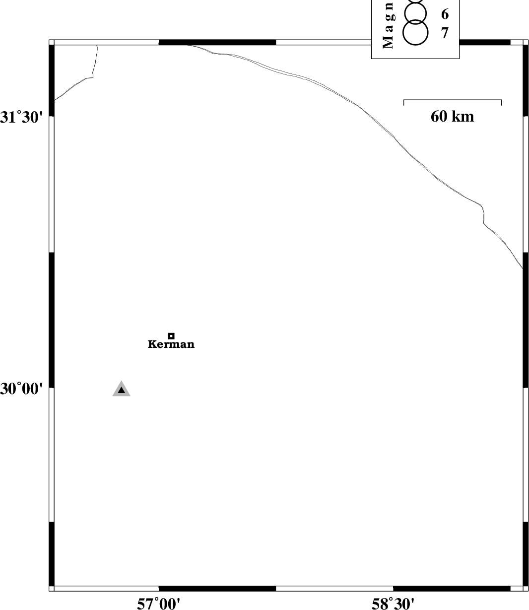 2014/05/28 | 21:15:34.5 | 01:45:34.5 | 30.39 | 57.83 | 18 | ML:2.9 | Kerman Province, 73 km North-East of Kerman | ||