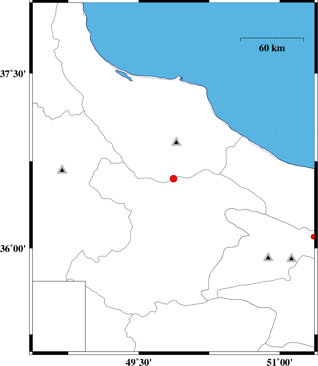 2014/06/01 | 17:34:09.6 | 22:04:09.6 | 36.6 | 49.87 | 6 | ML:3.4 | Gilan Province, 39 km North-West of Qazvin | ||