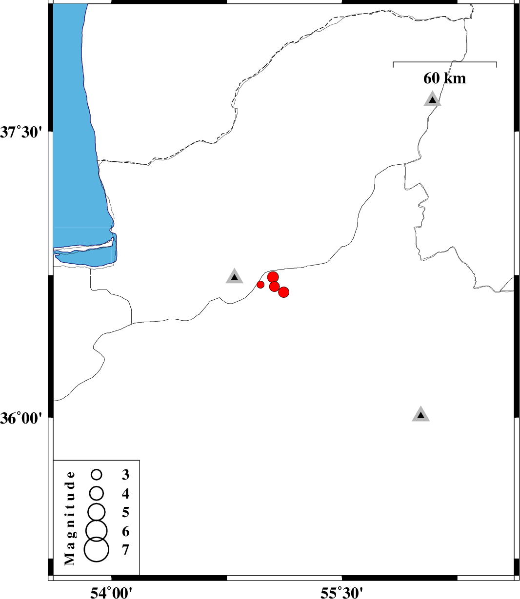 | 2014/05/25 | 21:40:04.8 | 02:10:04.8 | 36.7 | 54.97 | 14 | ML:2.1 | Semnan Province, 31 km North of Shahrud |