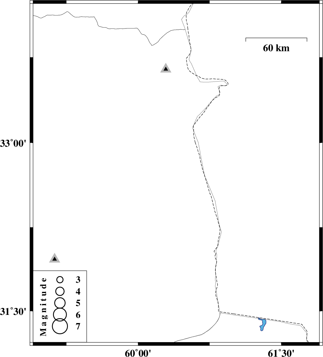 2014/06/12 | 20:30:14.5 | 01:00:14.5 | 32.72 | 60.4 | 15 | ML:3.5 | Khorasan(south) Province, 58 km East of Sarbisheh |