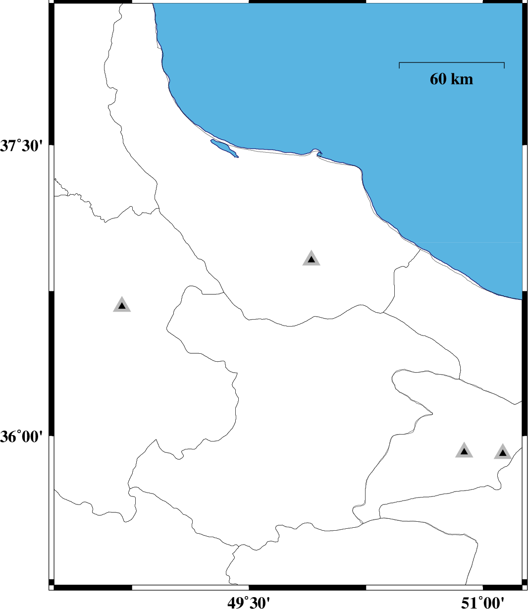 2014/06/14 | 08:41:30.1 | 13:11:30.1 | 36.72 | 49.75 | 14 | ML:2.9 | Gilan Province, 31 km South-East of Rudbar | ||