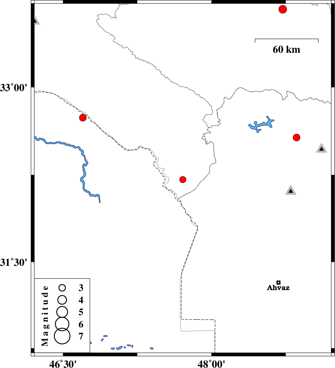2014/06/08 | 05:47:10.7 | 10:17:10.7 | 32.74 | 46.7 | 18 | ML:3.2 | Iraq, 53 km West of Dehloran | ||