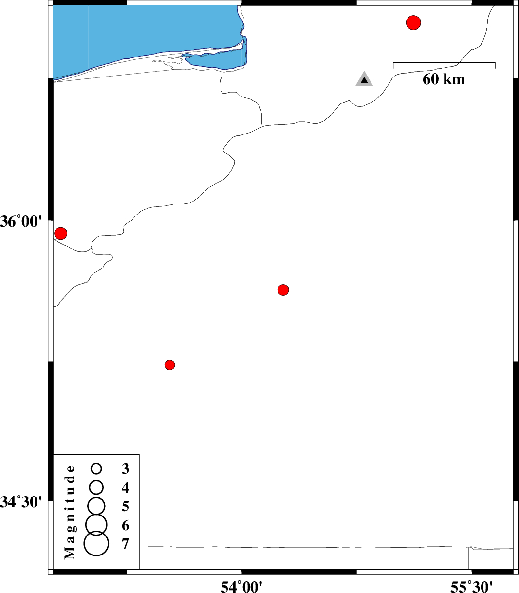 | 2014/06/16 | 08:20:43.9 | 12:50:43.9 | 35.63 | 54.27 | 16 | ML:3.2 | Semnan Province, 61 km South of Damghan | ||
