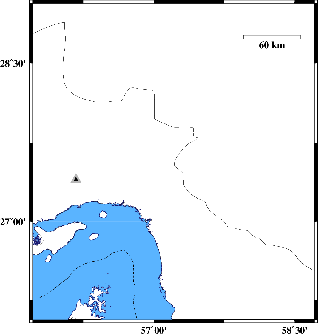 2014/05/27 | 17:38:04.6 | 22:08:04.6 | 27.56 | 56.81 | 17 | ML:3.4 | Hormozgan Province, 45 km North-West of Dehbarez | ||