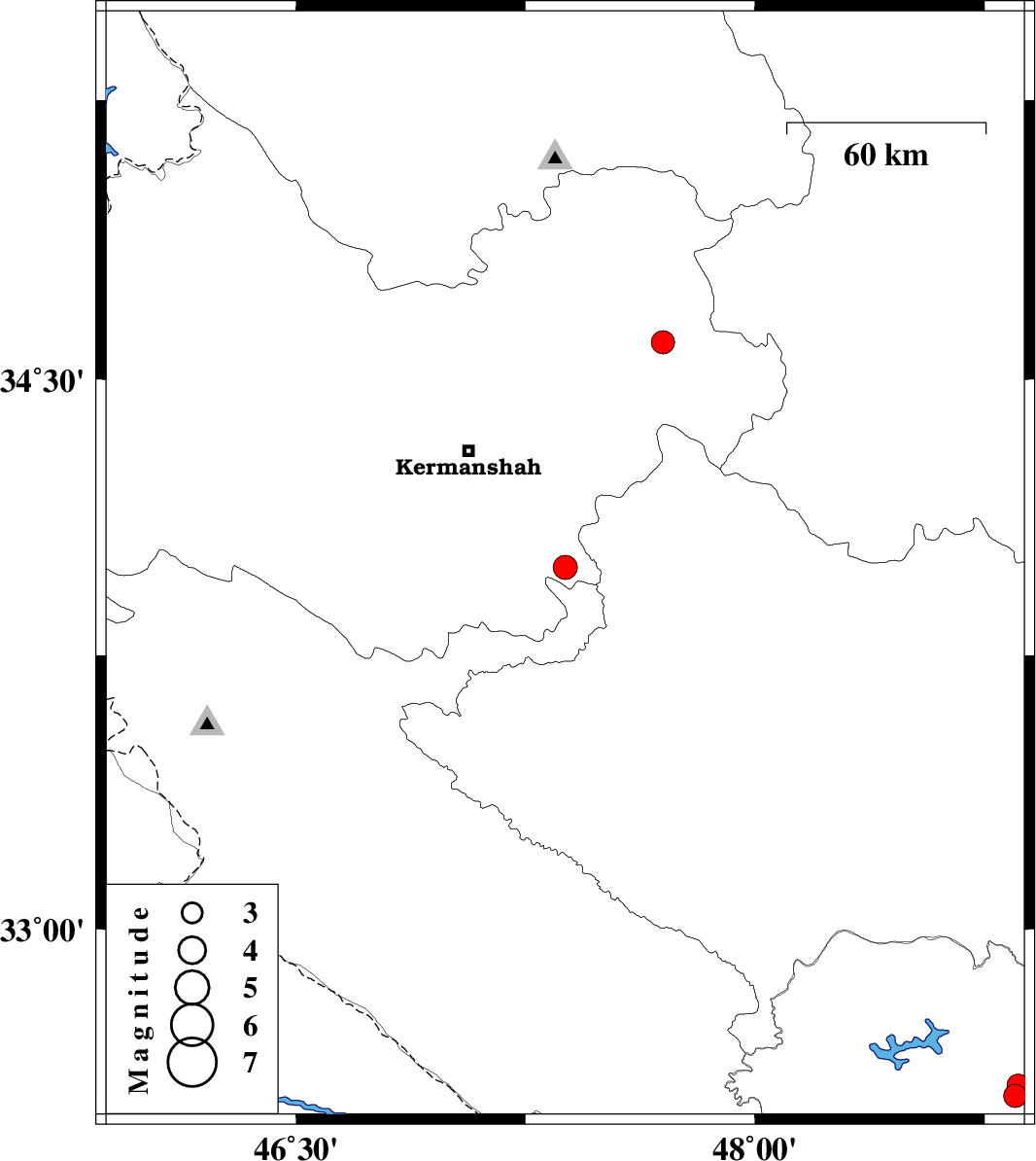2014/06/18 | 13:39:06.9 | 18:09:06.9 | 34.6 | 47.7 | 14 | ML:3.4 | Kermanshah Province, 14 km North of Sahneh | ||