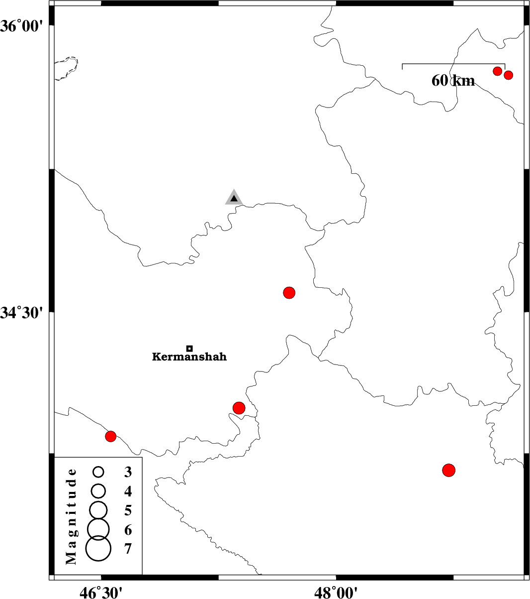 | 2014/06/18 | 13:39:06.9 | 18:09:06.9 | 34.6 | 47.7 | 14 | ML:3.4 | Kermanshah Province, 14 km North of Sahneh | ||