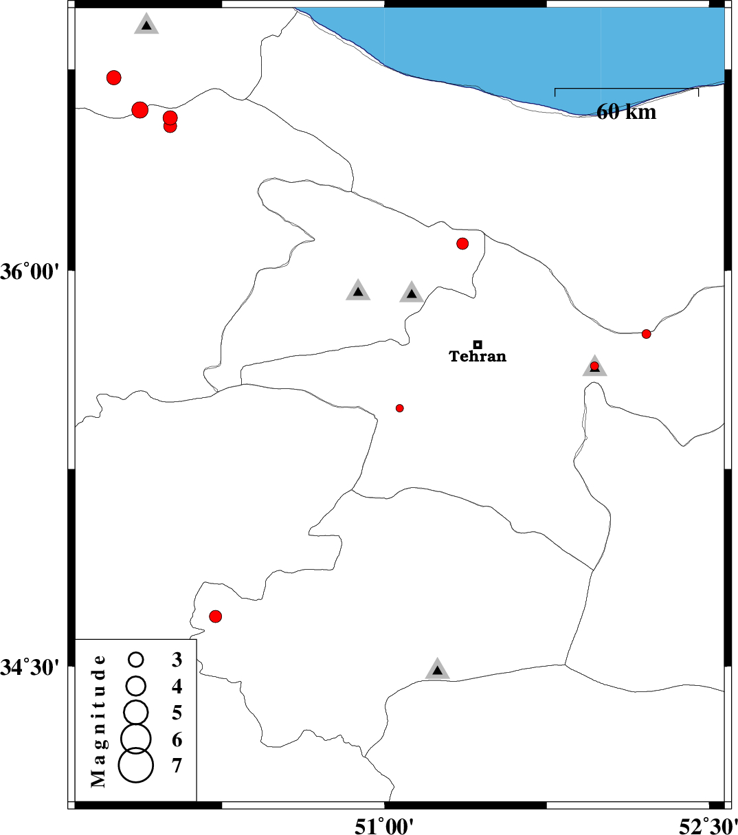 | 2014/05/23 | 10:23:54.1 | 14:53:54.1 | 35.76 | 52.21 | 16 | ML:1.8 | Tehran Province, 13 km East of Damavand |
