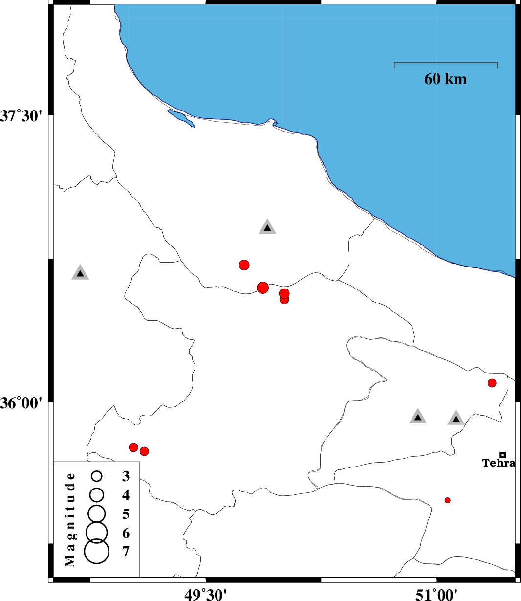 | 2014/06/14 | 08:41:30.1 | 13:11:30.1 | 36.72 | 49.75 | 14 | ML:2.9 | Gilan Province, 31 km South-East of Rudbar | ||