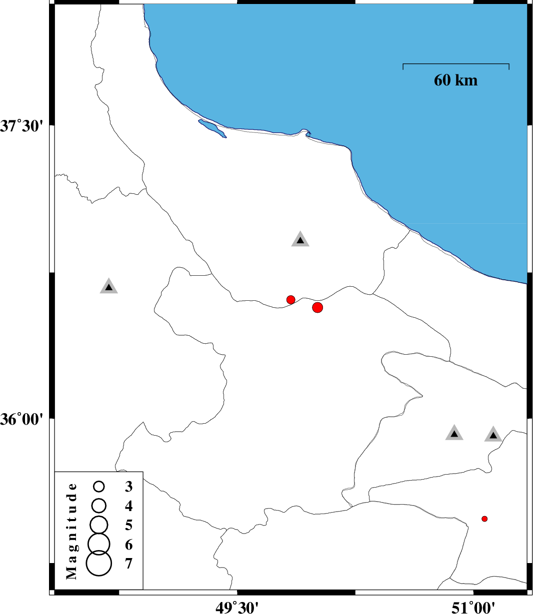 | 2014/06/25 | 16:08:23.0 | 20:38:23.0 | 36.61 | 49.84 | 14 | ML:2.4 | Gilan Province, 41 km North-West of Qazvin | ||