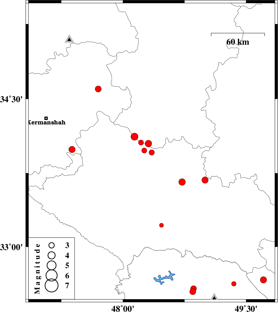 2014/06/18 | 13:39:06.9 | 18:09:06.9 | 34.6 | 47.7 | 14 | ML:3.4 | Kermanshah Province, 14 km North of Sahneh | ||