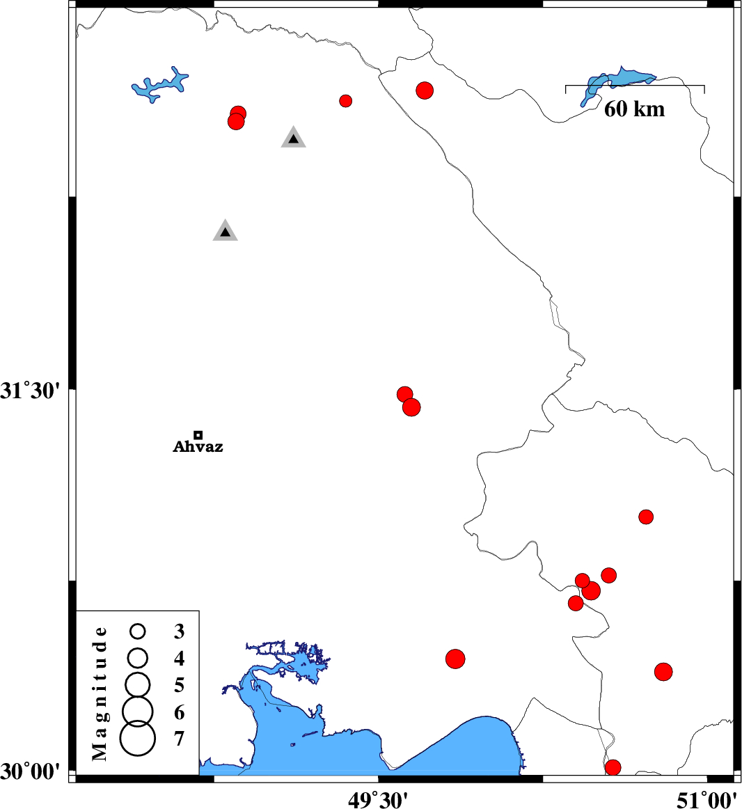 2014/06/15 | 02:21:26.3 | 06:51:26.3 | 32.62 | 49.35 | 15 | ML:2.6 | Khoozestan Province, 34 km North-East of Lali | ||