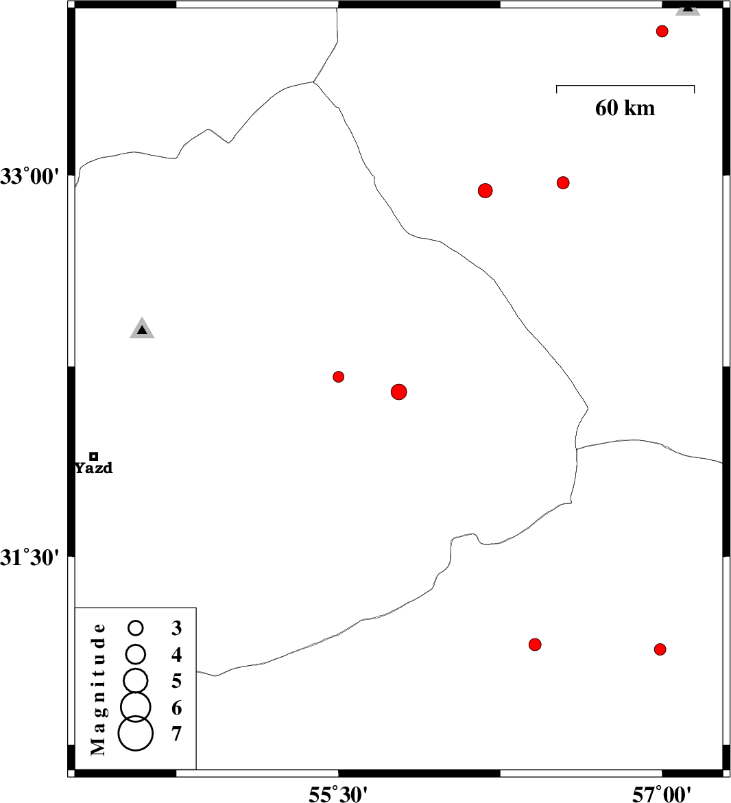 2014/06/09 | 23:00:31.4 | 03:30:31.4 | 32.94 | 56.18 | 37 | ML:3 | Yazd Province, 101 km South-West of Tabas |