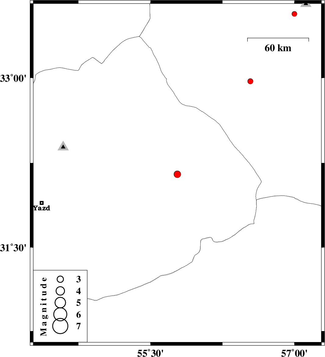 | 2014/07/05 | 22:14:08.2 | 02:44:08.2 | 32.15 | 55.78 | 17 | ML:3.2 | Yazd Province, 71 km North-East of Bafq | ||