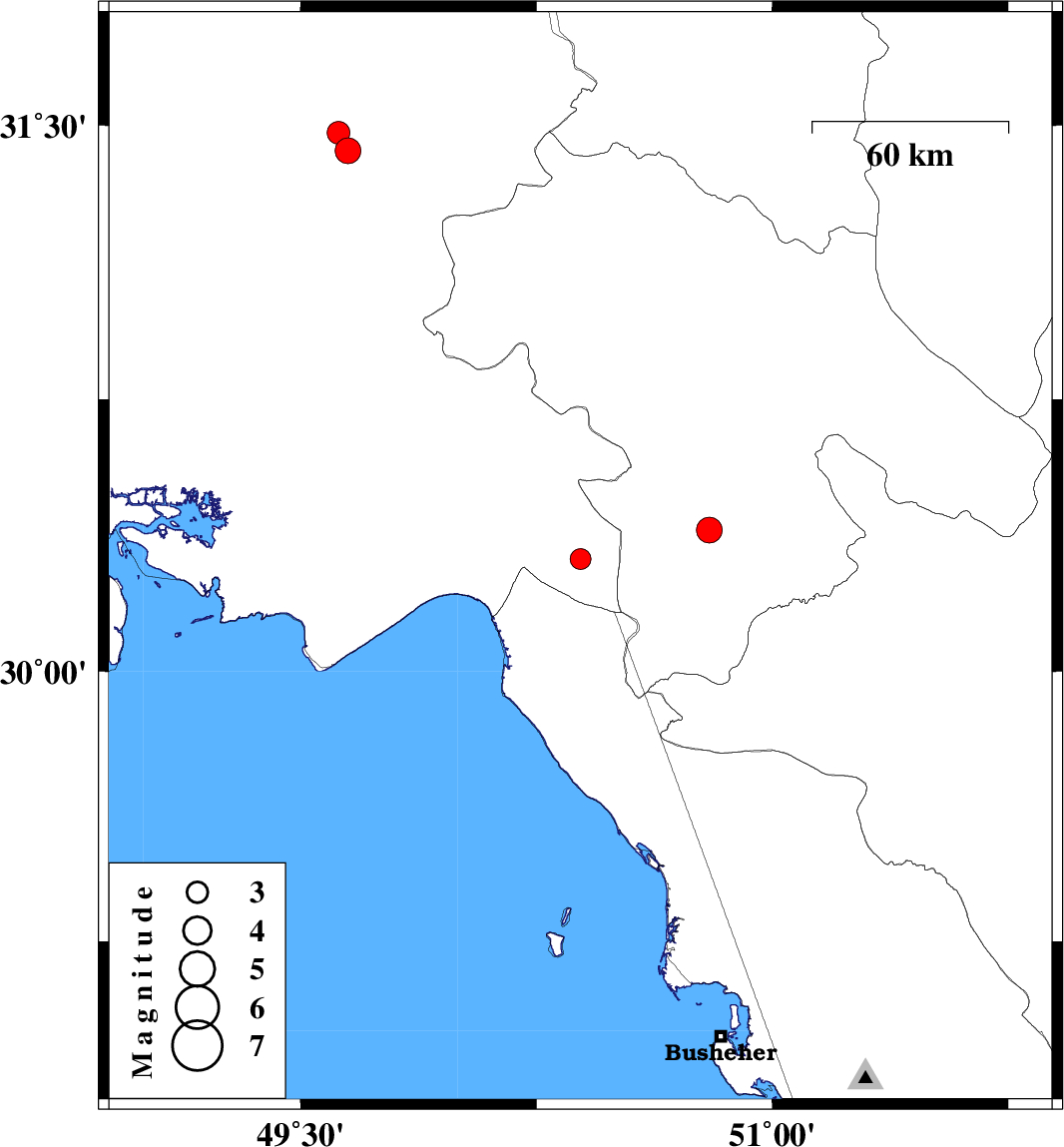 | 2014/07/04 | 22:25:54.8 | 02:55:54.8 | 31.43 | 49.65 | 14 | ML:3.6 | Khoozestan Province, 17 km North of Ramhormoz | ||