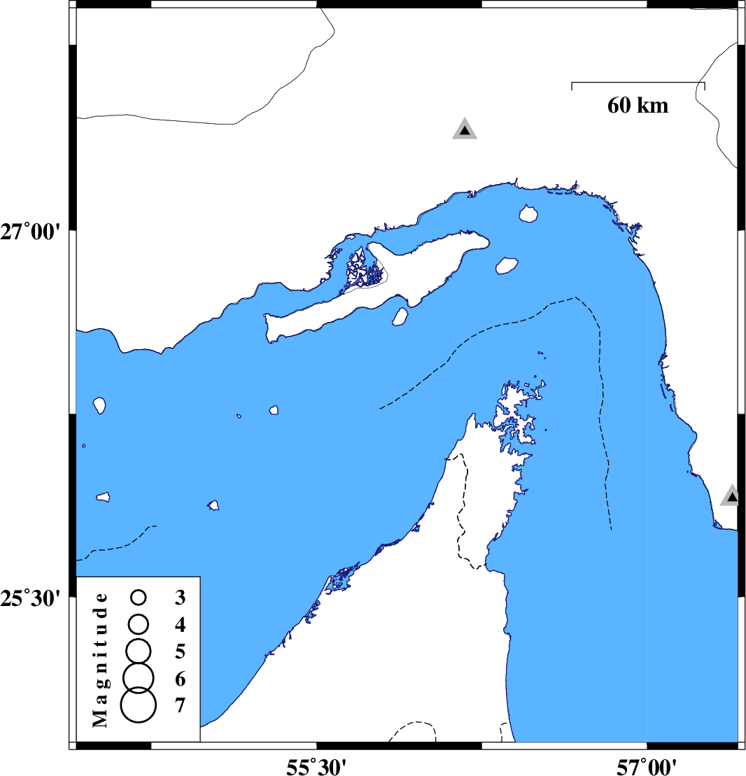 | 2014/07/15 | 11:24:30.7 | 15:54:30.7 | 26.4 | 55.91 | 44 | ML:3.4 | Persian Gulf, 71 km South-West of Qeshm |