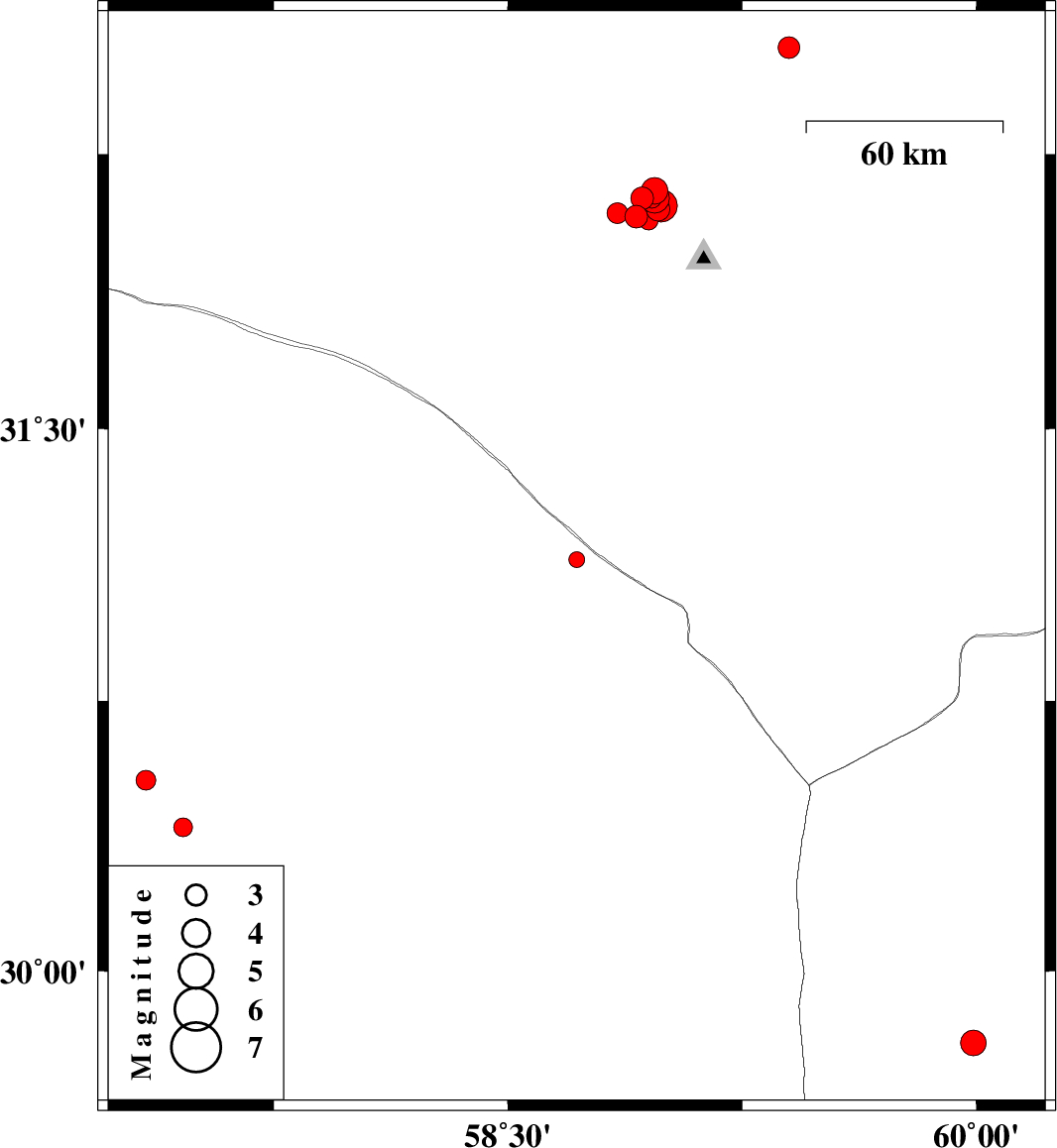 2014/06/28 | 18:40:27.5 | 23:10:27.5 | 32.09 | 58.85 | 18 | ML:2.9 | Khorasan(south) Province, 96 km South-West of Birjand |