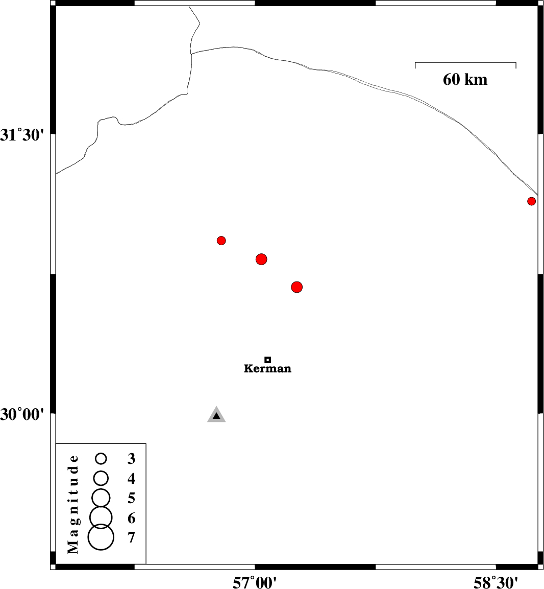 2014/07/27 | 00:04:14.9 | 04:34:14.9 | 30.83 | 57.04 | 14 | ML:3.1 | Kerman Province, 45 km East of Zarand | ||