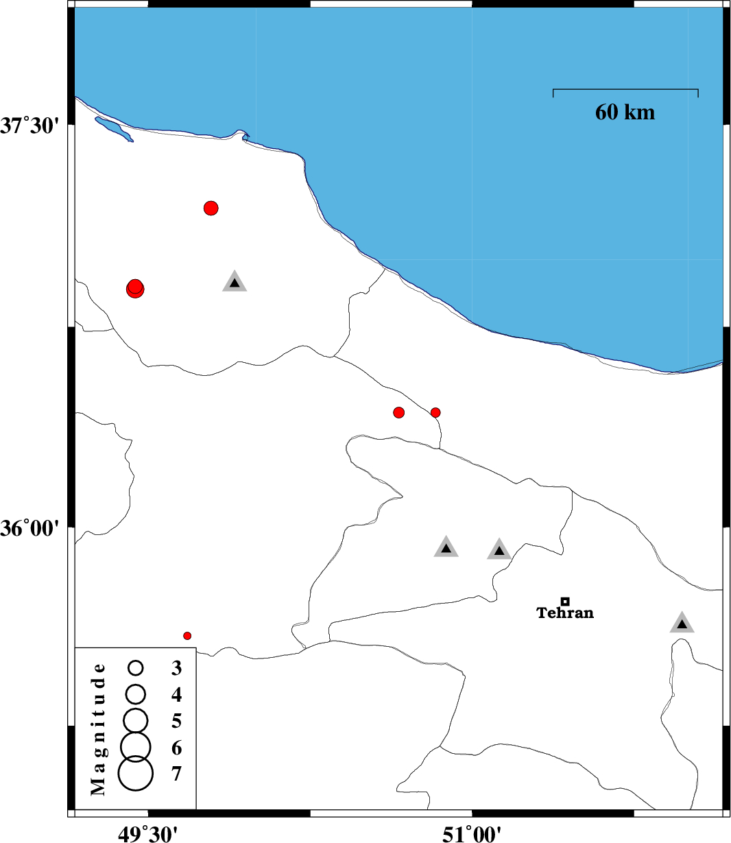 | 2014/07/13 | 01:29:14.0 | 05:59:14.0 | 36.43 | 50.83 | 14 | ML:2 | Mazandaran Province, 44 km South of Tonekabon | ||