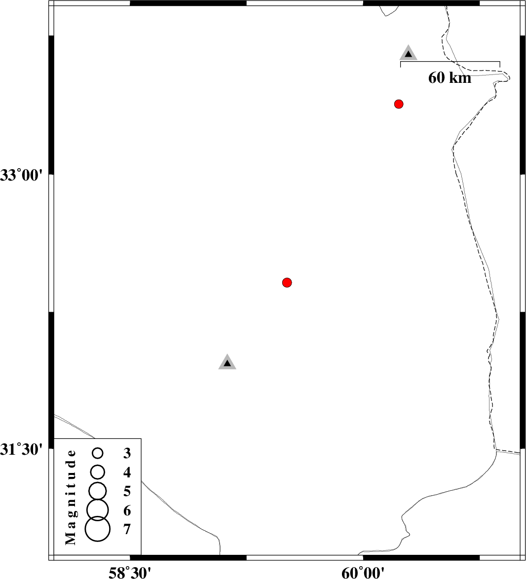 2014/08/10 | 16:15:55.9 | 20:45:55.9 | 33.38 | 60.23 | 16 | ML:2.5 | Khorasan(south) Province, 94 km North-East of Sarbisheh |