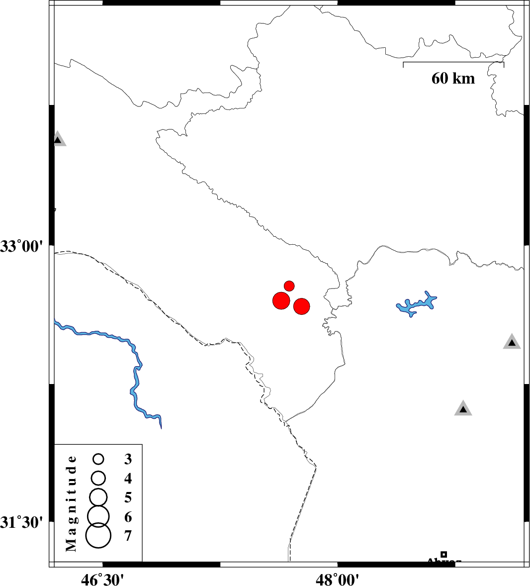 | 2014/08/17 | 15:35:13.9 | 20:05:13.9 | 32.78 | 47.69 | 18 | ML:3 | Ilam Province, 27 km South-East of Abdanan | ||