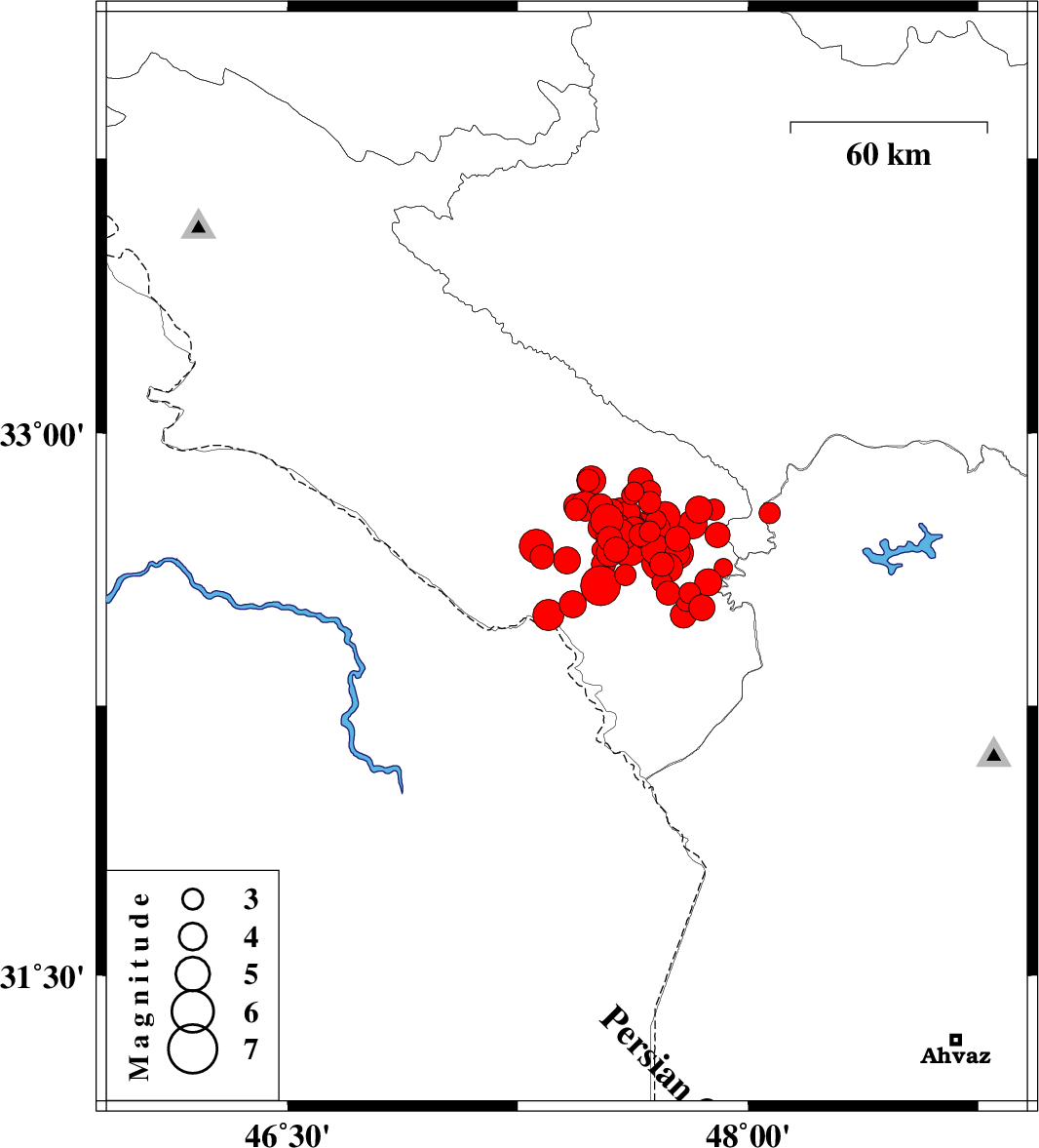 2014/08/18 05:25:51.3 09:55:51.3 32.6947.6114 ML:5.8 Ilam Province, 33 km East of Dehloran